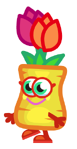 Blossom the Blooming Wonder is a common Moshling in the Potties set in Moshi Monsters. They are a plant pot who is infused with enchanted fertiliser. The fertiliser can breathe life into anything. Blossom's flowers can grow at an instant.