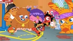 - When Blingo pushes the red button, HipHop's legs are cyan instead of blue and McNulty's tail is missing.