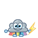Flash the Rowdy Rumbler is a Super Moshling in the Noisies set in Moshi Monsters Egg Hunt. They are a grey thunder cloud. They can start loud storms but can also unfurl their rainbow capes after a storm.