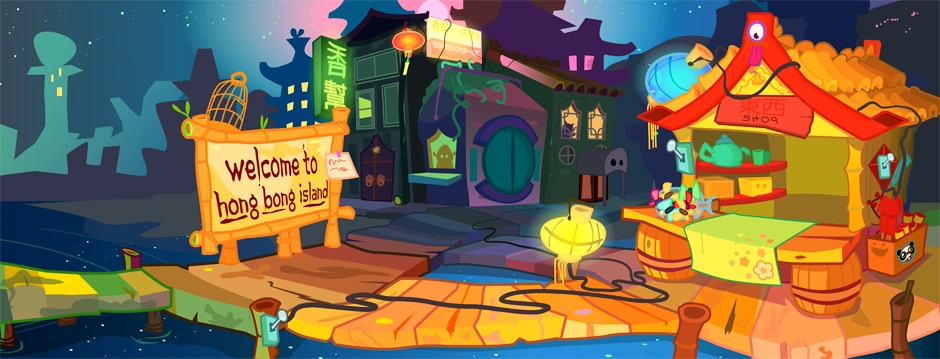 Lost in Hong Bong took place here. The only known resident is Wobblesan, a shopkeeper. When you arrive in search of Cap'n Buck, the Hong Bong New Year is celebrated down town.