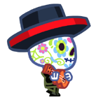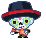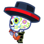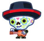 Hoolio the Creepy Crooner is an uncommon Moshling in the RoxStars set within the Moshi Monsters franchise. Hoolio is a calaca/calavera who can create quite a spook for anyone who sees them as they play mournful music when the full moon is out. Appearance aside, their colourful makeup and attire makes them quite charming when they hand out roses and ask for tips.