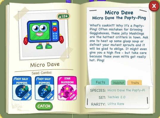 - When viewing Micro Dave's biography in the Moshling Zoo, a programming error displayed the Moshling's species as "Micro Dave the Popty-Ping."