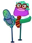 Ned is a purple Glump, who was named by a player named hayley11233, with big goggles, a golden tooth and a purple body. He is an uncommon Glump (like Bruiser) as he does not appear often, including in Moshling Boshling.