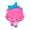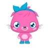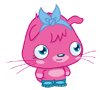 Poppet is a large, fuchsia pink, cat-like monster, with large, lapis blue eyes. Standing aside each of her eyes is a set of whiskers, which protrude out of her head. She has a small, agile body. She has two thick arms, with her paws enveloped in a light fuchsia pink, there is a rather large circle on her stomach in the same light fuchsia pink. She wears a pair of lapis blue boots and has a coil, spiral-shaped tail. Her hair is slightly unkempt which contrasts her tidy personality. Poppet often wears a lapis blue bow.
