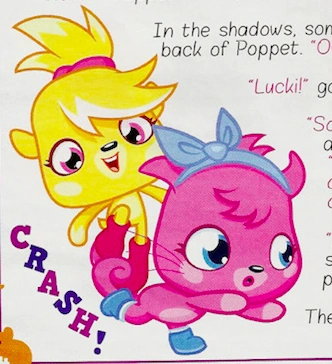 Poppet can become annoyed by her friends' attitude when they are predominantly big-headed or deliberately rude. This attitude is most notable with Katsuma's behaviour throughout the movie and in other narrative depictions. Other than Katsuma, she has shown visible annoyance to Serena when she disrupts the Baby Moshlings' sleep schedules in Serena's Show. Poppet also becomes frustrated when Luvli when she seemingly ignores Poppet and pushes in front of her in The Sludge Street Stand-In!.