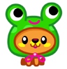 - Bow secures froggie costume.