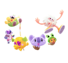 The best way to get your paws on one of these happy hounds is by tugging on their pretty pink bows. This will make their rubbery Froggie outfit deflate! You can also make these Puppies' costumes pop with a pin. So, the Froggie Doggies are somewhat scared of knitting needles!