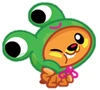 Moshlings can be strange creatures and none more so than the Froggie Doggies. They are dogs who like to dress up as frogs. Hmmm. Naturally, they hang out at Lillypad Lake and Croak Creek, where they leap about calling out, "Ribbit! Ribbit!".