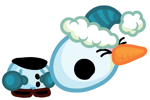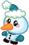 Tomba the Wistful Snowtot is a common Moshling in the Snowies set. They are a glum snowman with blue gloves and a hat. Tomba is made out of ice and snow and can melt in the harsh heat.