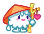 Wuzzle the Wandering Wumple is a rare Moshling in the Gurus set in Moshi Monsters. Wuzzle is an ancient Moshling who lived before the Great Custard Flood. They enjoy drifting around.