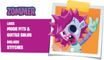 Zommer is a punk zombie that is falling apart if it weren't for his stitches and with detachable limbs, specifically the right arm and eye. Any Zommer has only one eye socket filled and this eye can move freely to the other socket. Though able to have any arm, he picked a feminine human arm that has a sense of self-care and etiquette. A Zommer's default colours are blue-ish purple skin, red-ish purple hair and a light-skinned human arm. The haircut is a punk look with a shaved side.